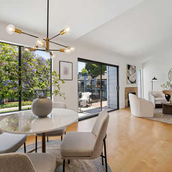 Located in the tree-studded community of The Waters, this top-floor unit at 905 W Middlefield #924 pairs updated interiors with peaceful pond views and a convenient Mountain View location. Vaulted ceilings and fresh paint enhance the open-concept living space, which includes a fireplace and a balcony with modern glass-and-metal railing. The refreshed kitchen features new quartz countertops, painted cabinetry, updated lighting, and stainless steel appliances, while the adjacent dining room features a striking modern chandelier. Two bedrooms enjoy southern exposure and leafy outlooks; the primary includes an ensuite bath with updated vanity, tile flooring, and lighting. The secondary bathroom mirrors these updates and sits beside the second bedroom. Other features include in-unit laundry, abundant storage, and new lighting throughout. A detached garage provides dedicated parking and storage. Enjoy community amenities including pool, hot tub, and tennis courts, plus proximity to parks, Castro Street, and Caltrain.